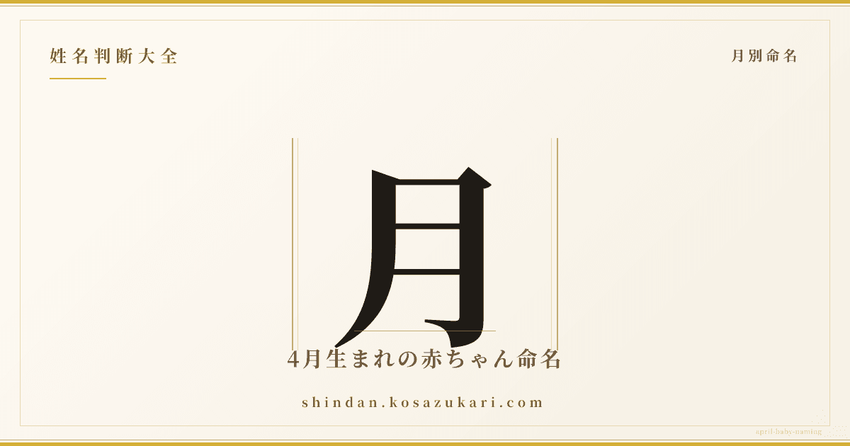 4月(卯月/うづき)は新年度の始まりと新緑の月。入学・入社・新生活の門出の象徴に満ちた季節です。4月生まれは「始まり」「希望」「躍動」の象徴を名前に取り込めます。