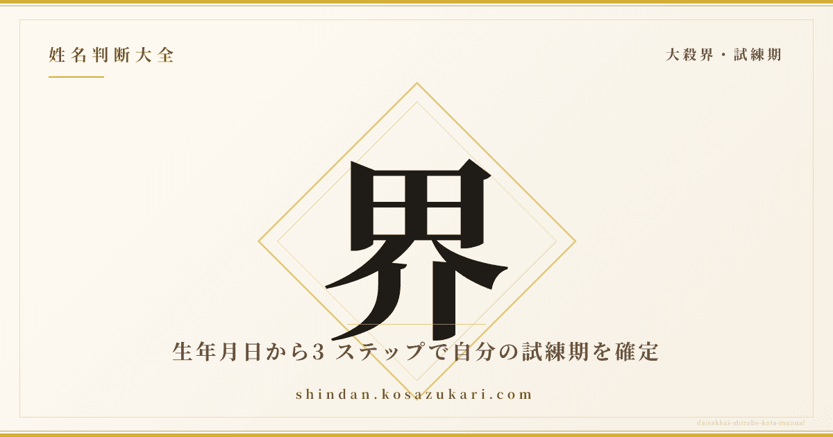 なお、世間で言う「大殺界 3 年」という表現は、3 年連続の試練期を指す慣用句です。陰影・停止・減退のそれぞれに性格的な違いがあるため、本記事の Batch 1 第5 本『大殺界の3 年構造詳説』で技術的に深掘りしています。