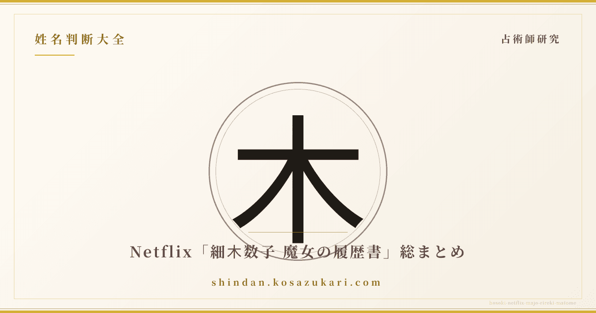 Netflix「魔女の履歴書 / 細木数子」配信を機に、改めて細木数子氏の占術と人物像が注目されています。当サイト編集部は、エンタメとして楽しまれる側面と、実際の占術理論としての側面を両立させる解説を心がけ、配信内容の文脈と当サイトの占術データベースを照合しながら情報を整理しています。