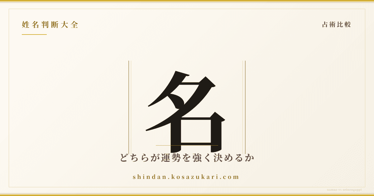 「名前と生年月日、どちらが運勢を強く決めるのか」――これは占術を学ぶ人なら一度は突き当たる根本的な問いです。六星占術や四柱推命は生年月日を運勢の主軸とし、姓名判断は姓名を主軸とします。同じ一人の人物に対し、両占術が異なる結論を出すことは珍しくありません。本記事では、両占術を中立的に比較し、先天運と後天運、本質と環境、変えられないものと変えられるもの、という古典的な二分法から、姓名判断士の立場で「どちらが強く運勢を決めるか」の問いに答えます。