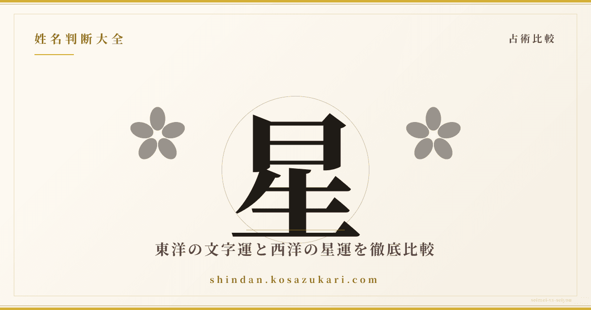 東洋系の姓名判断と西洋系の占星術 ── 人類が持つ二大運命読解体系を、同じ「一人の人物」を対象として比較します。本記事では、姓名判断(熊崎健翁・1934)と西洋占星術(プトレマイオス『テトラビブロス』・西暦150年頃)の歴史・体系・診断結果の差・強み弱み・併用法を一次典拠ベースで整理します。