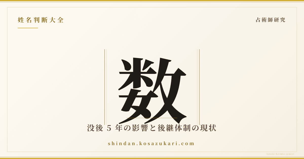 故 細木数子氏(1938-2021)の長女で六星占術の正統継承者・細木かおり(1972-)の姓名判断と、母から娘への占術継承を整理する研究コラム。「かおり」の字義・画数、母名「数子」との対比、令和の六星占術の現在地までを文献ベースで検討。