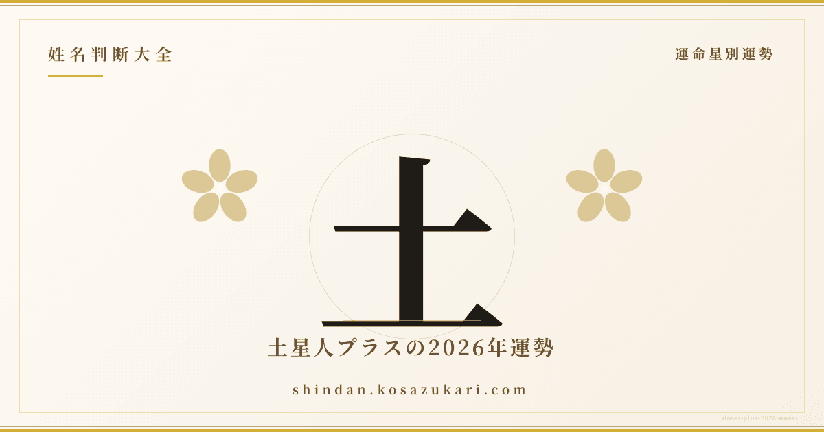 故 細木数子氏(1938-2021)が体系化した六星占術(故 細木数子氏の登録商標)の12タイプのうち、土星人プラスに該当する人の2026年運勢を年運周期論をもとに整理。仕事・恋愛・健康・金運の四領域を月別に詳細予測し、流派の出典に基づき第三者的にまとめた研究的コラムです。