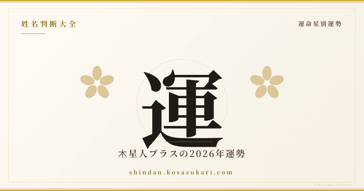 故 細木数子氏(1938-2021)の体系化した「六星占術」(株式会社六星舎の登録商標)を中立的に解説。水星人プラス(+)の2026年が12周期のどこに位置するか、月別運勢、大殺界中殺界との関係、姓名判断との併用法までを整理した独立メディアの研究記事。