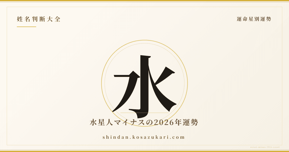 故 細木数子氏(1938-2021)が体系化した六星占術(故 細木数子氏の登録商標)の12タイプのうち、水星人マイナスに該当する人の2026年運勢を年運周期論をもとに整理。仕事・恋愛・健康・金運の四領域を月別に詳細予測し、流派の出典に基づき第三者的にまとめた研究的コラムです。