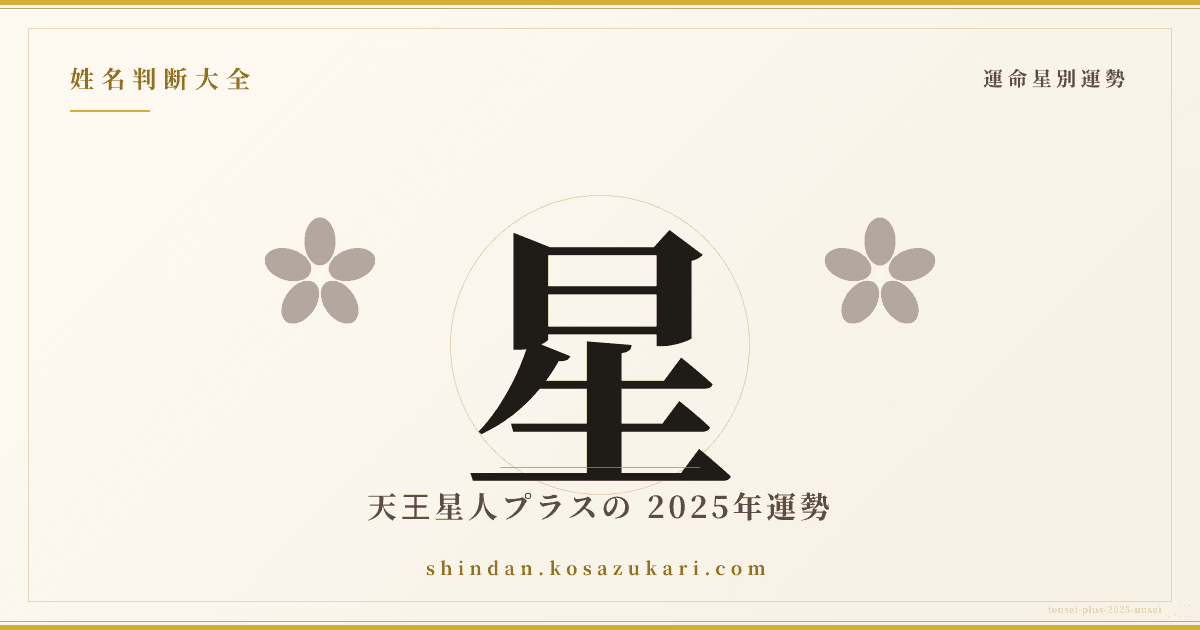 故 細木数子氏(1938-2021)の体系化した「六星占術」(株式会社六星舎の登録商標)を中立的に解説。天王星人プラス(+)の2025年が12周期のどこに位置するか、月別運勢、好調期の活用法、姓名判断との併用法までを整理した独立メディアの研究記事。