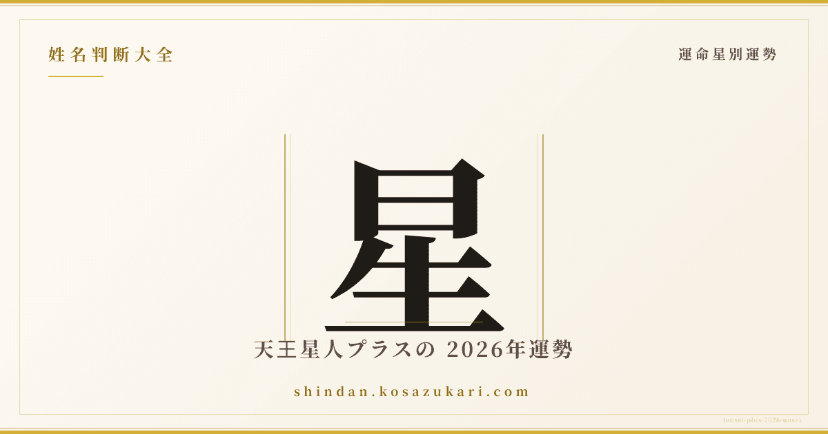 故 細木数子氏(1938-2021)が体系化した「六星占術」(株式会社六星舎の登録商標)の理論を中立的に解説。天王星人プラス(+)の2026年が12周期のどこに位置するか、月別運勢、大殺界・中殺界との関係、姓名判断との併用法までを文献ベースで整理した独立メディアの研究記事。