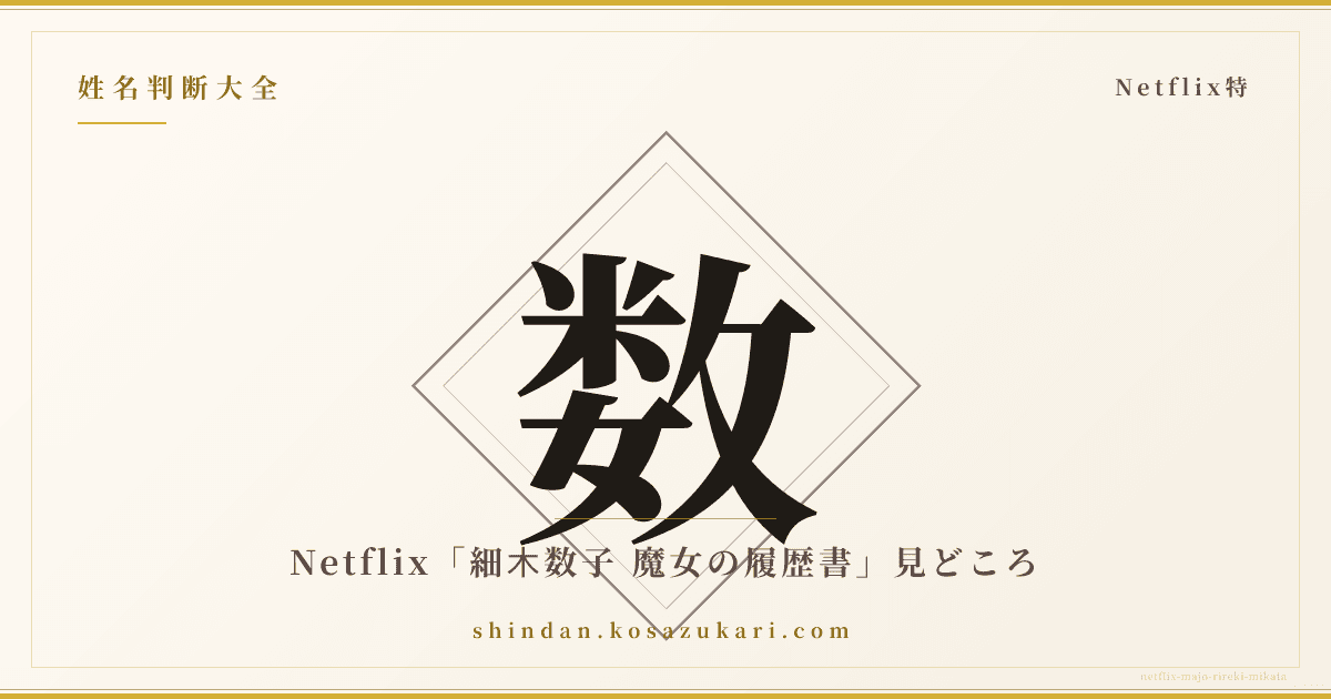 Netflix『細木数子 魔女の履歴書』(2026) は、被写体・関係者・取材者など多様な登場人物で構成されます。本記事は作品で言及される人物の姓名(公開情報の範囲内)を、姓名判断の視点から中立的に解説。占いコンテンツとしての参考情報を提供します。